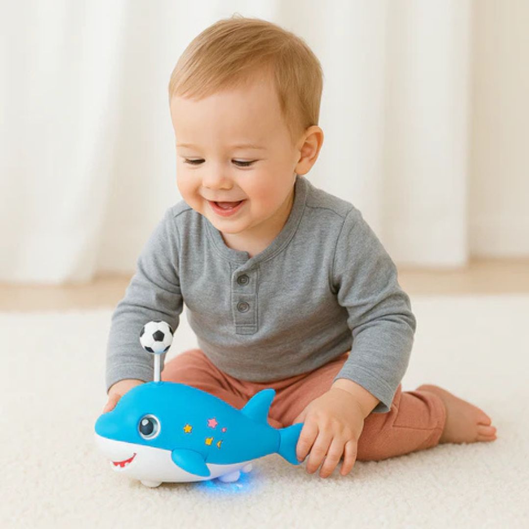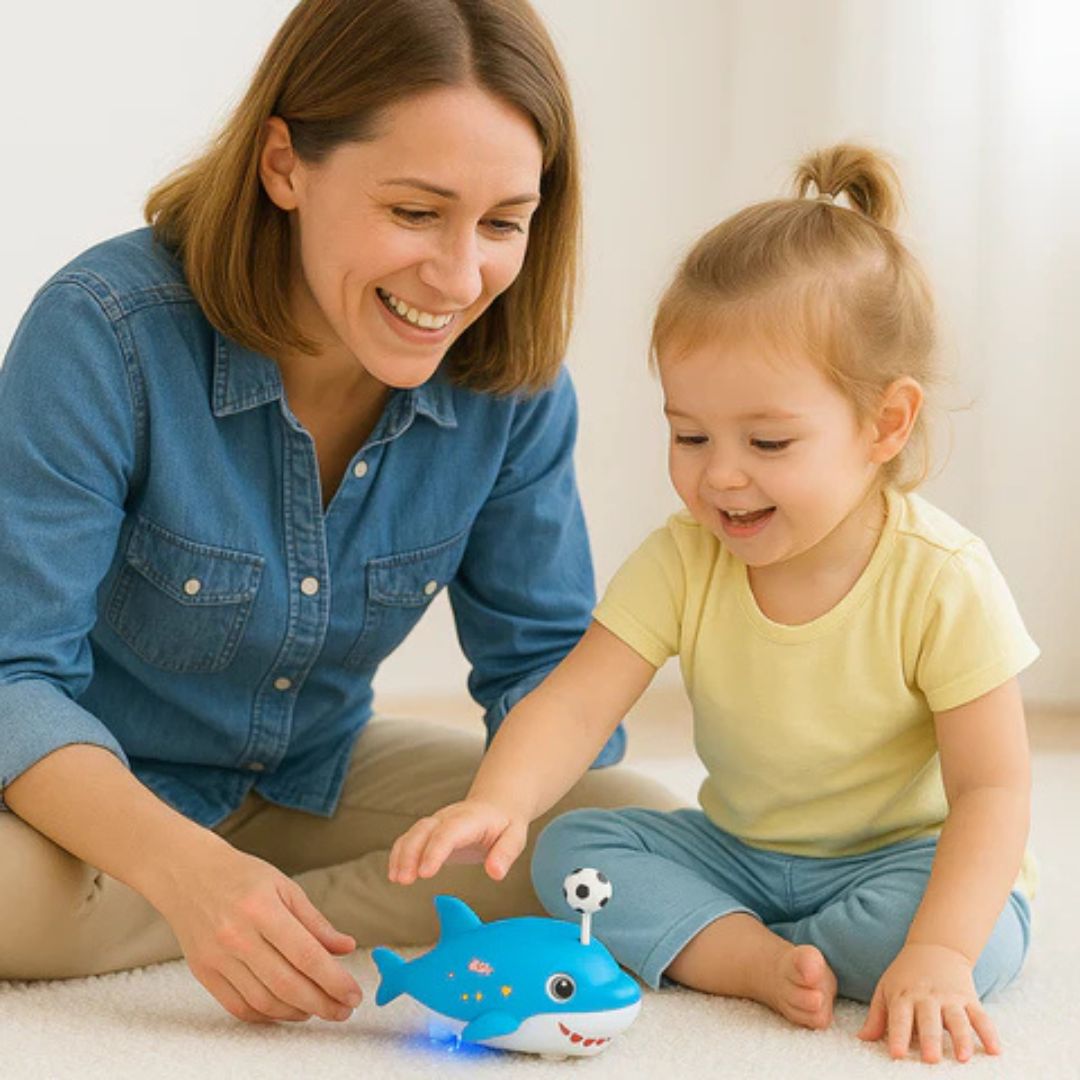 Ervaar hoe de haai gewone speeltijd verandert in levendige, fantasierijke momenten, terwijl kinderen de knipperende lichtjes, muziek, bewegende wieltjes en de magisch zwevende bal volgen. Dit unieke speelgoed neemt kinderen mee in een wereld vol plezier en nieuwsgierigheid, waar ze zich volledig kunnen onderdompelen in spel zonder schermen.